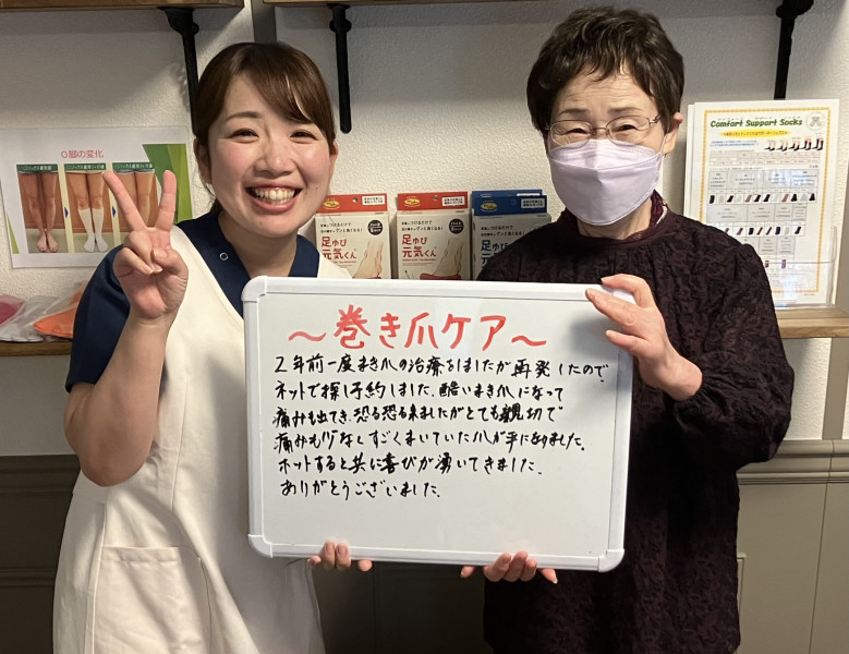 本日は、巻き爪ケアでご来院いただいたお客様の嬉しいお声をご紹介いたします。