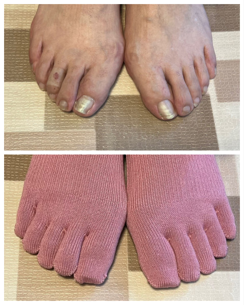 補正ソックスを履くことで、指と指の間に適度なスペースができ、